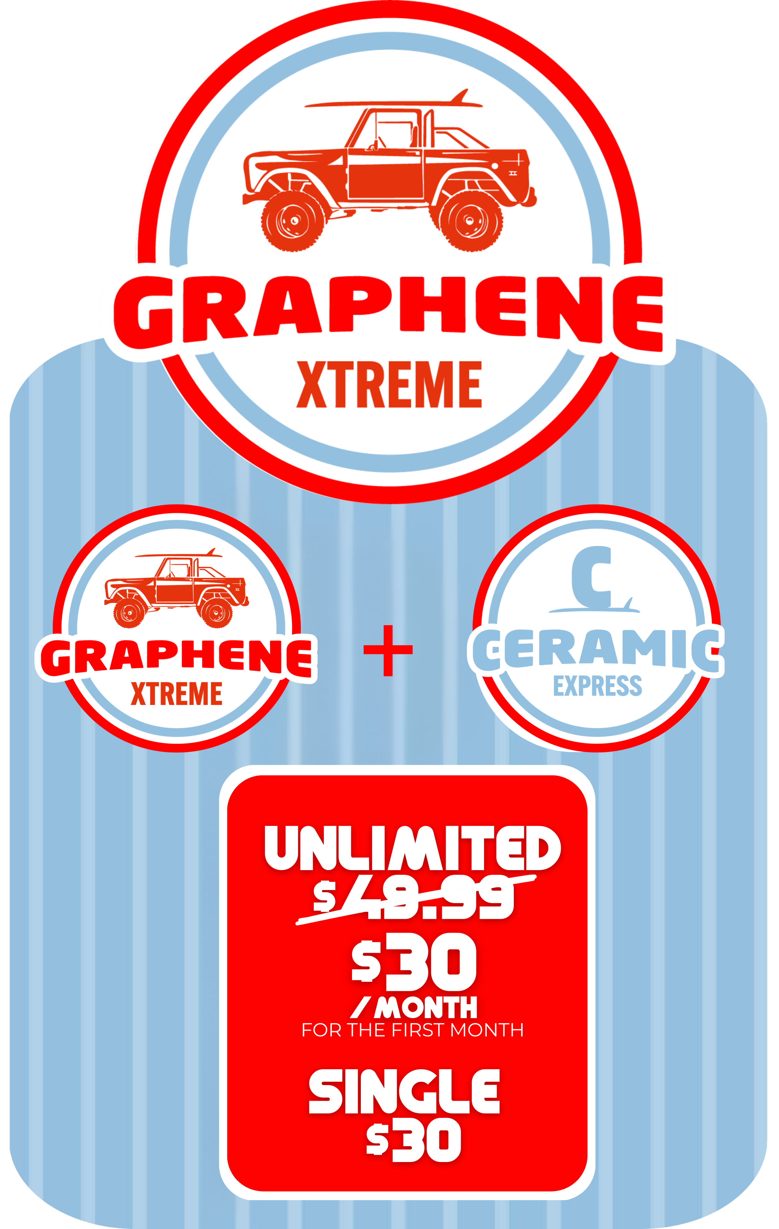 Our top-tier wash includes advanced Graphene technology, giving your car a durable, brilliant shine that’s built to last.